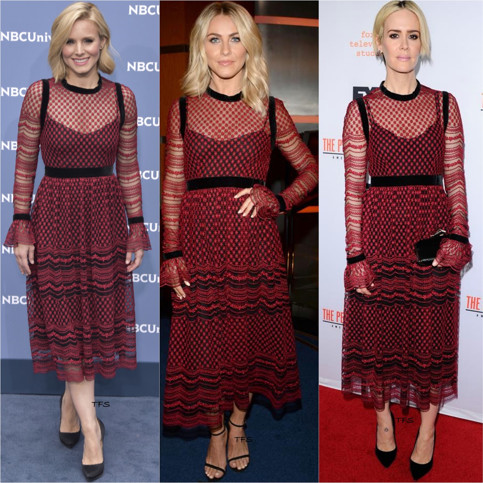 A 'Mr. Robot' 27 ves sznsznje egy elegns s kacr szettben ltogatott el az esemnyre, ahol remekl nzett ki, fleg ha az egyik utbbi megjelenshez, a Critics' Choice Awards-os Novis maxiruhjhoz hasonltjuk az egszet. Portia most egy a hressgek ltal nagyon kedvelt, mlyen dekoltlt, piros-fekete, hossz ujj Philosophy midiruht viselt a 2016-os szi/tli kollekcibl, ami az tltsz hatst kelti bennnk, a nude szn bettnek ksznheten, amit a piros ruha al varrtak. A sznsznn lthat ruht mr olyan emberek viseltk mr az elmlt hnapokban, mint Kristen Bell, Julianne Hough vagy ppen Sarah Paulson, viszont k a magas nyak verzi mellett tettk le a voksukat. Ahogy a fent emlegetett sznsznkn, gy Portia-n is nagyon tetszett az sszellts, a mly kivgsnak ksznheten szexisebb s fiatalosabb lett az egsz, ami hozz gy sokkal jobban passzolt szerintem. Az alakja is megfelelen ki lett emelve, fleg a dereka, amin a vkony, fekete vrsz is sokat segtett. A megjelenst egy pr fekete Christian Louboutin magassarkval s Sylva & Cie kszerekkel egsztette ki.